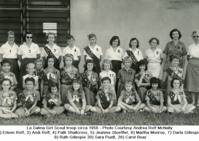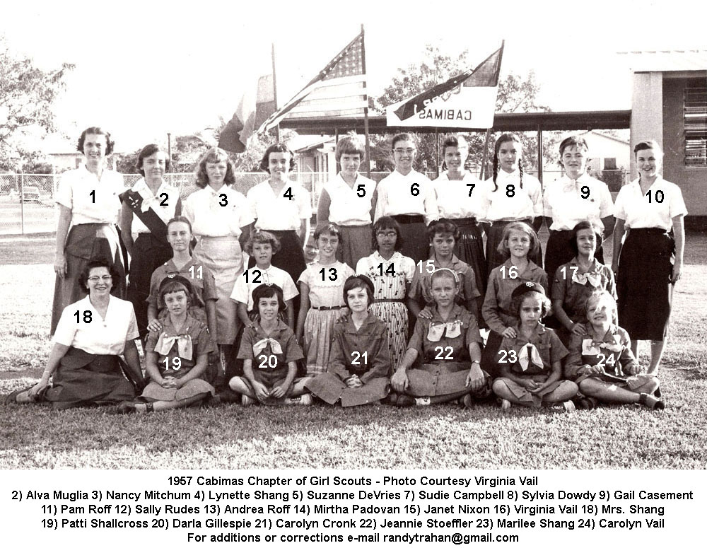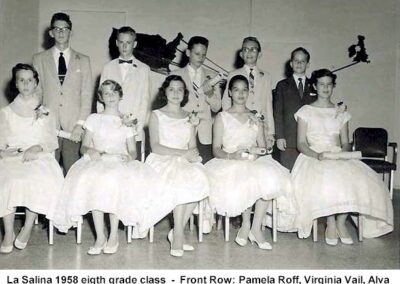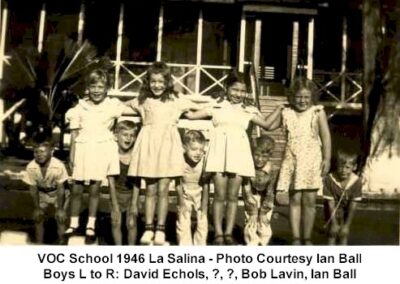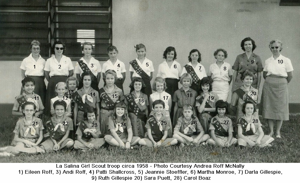 CAMPO PETROLERO LAS SALINASGalería Las Salinas 1 1957 Cabimas Girl Scouts 1958 Cabimas Girl Scouts Billy Russell in Amuay Butch Boaz & Kathy Daggit Carolyn Vail & Jonny Van Curran Double Exposure Eighth Graders 1960 Jeannie Stoeffler & Lorraine Smith Jeannie Stoeffler Jim McCormick Jimmy McCormick & Patty Schallcross La Salina 8th Grade La Salina Dance Party 1960 La Salina Dance Party La Salina From The Air -Photo Courtesy Steve Sleightholm 2 La Salina From The Air -Photo Courtesy Steve Sleightholm La Salina Graduating Class of 1960 – 2 La Salina Graduating Class of 1960 Nick Nicol Party in Hollywood Patti Shallcross, Jeanie Stoeffler & Sally Brown Patty Schallcross & Jimmy McCormick Steve & Friends -Photo Courtesy Steve Sleightholm Steve Lyle 2 Steve Lyle Susy Williams VOC School 1946